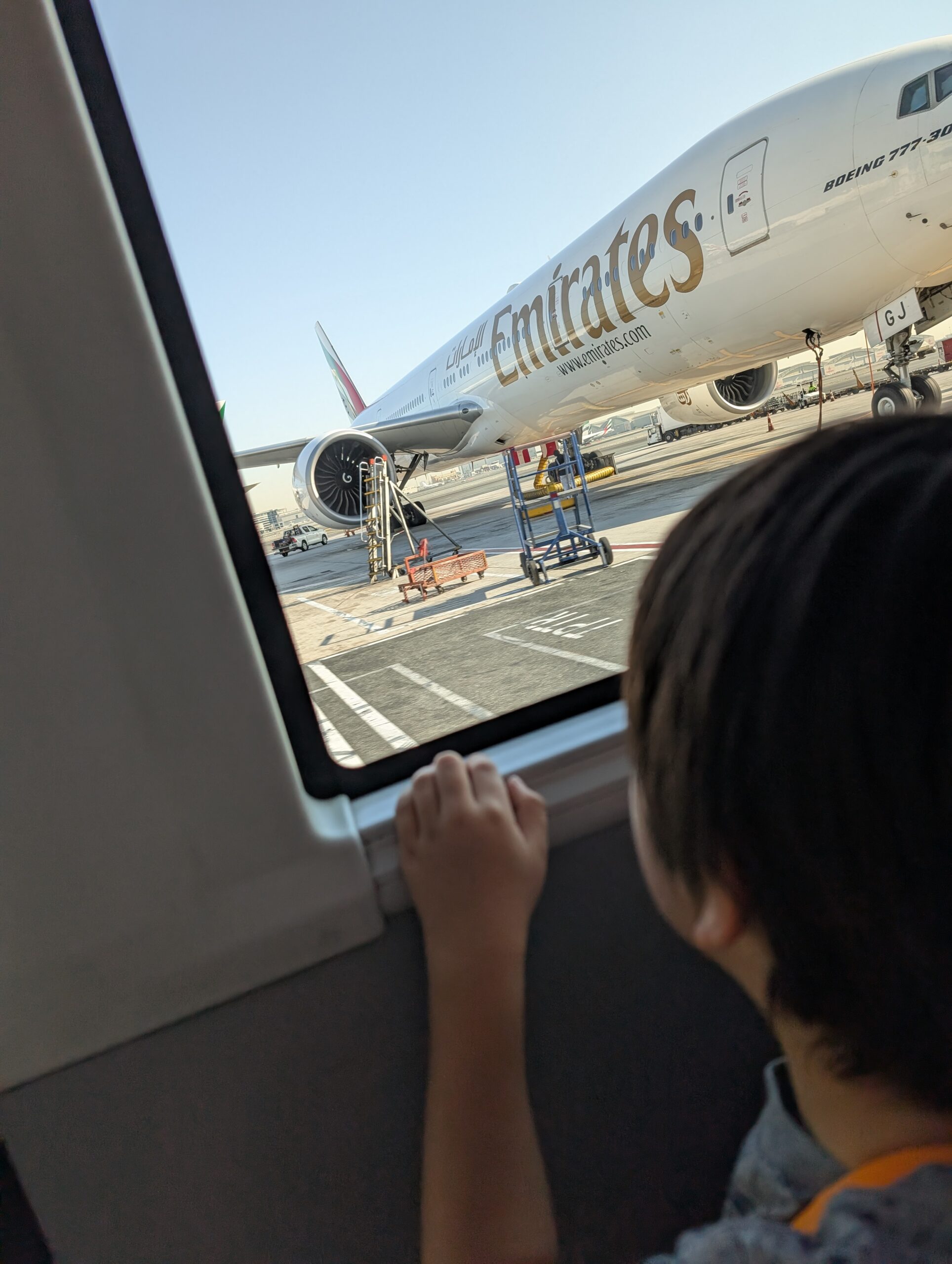 ドバイ回りで向かうエミレーツ航空は、やはり時間がかかります。子連れ初海外旅行、あなたならどの航空会社を選びますか?