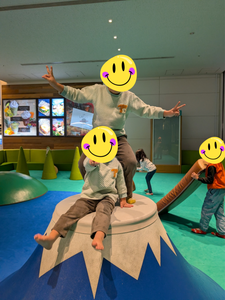 普段は子どもたちがとうに夢のなかにいる深夜00:05発、出国後の3階制限エリア(北)にあるキッズスペースで、搭乗開始ギリギリまで遊ばせました。