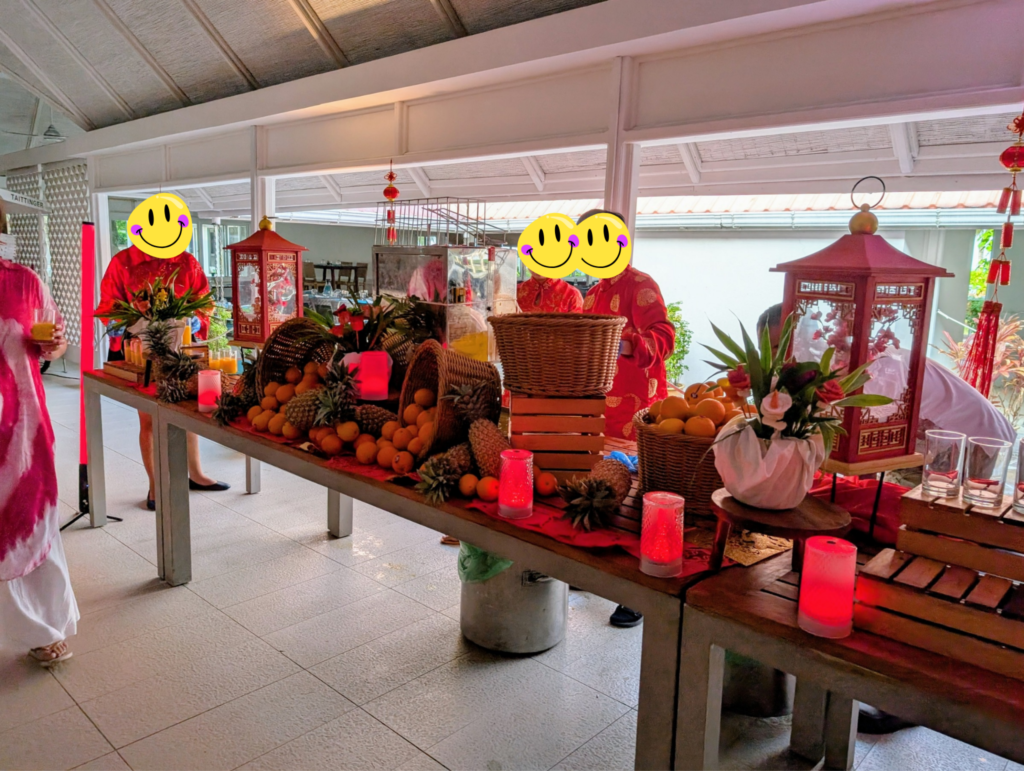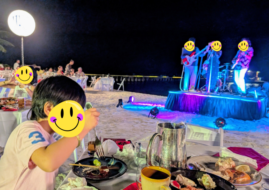 滞在中、レストランでは春節のお祝いパーティーがあり、海辺のLIVEを最前列で楽しむという贅沢体験も。