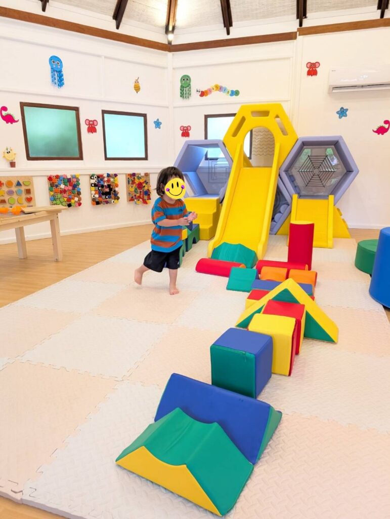 外は暑いモルディブでも、プレイルームは快適な温度。