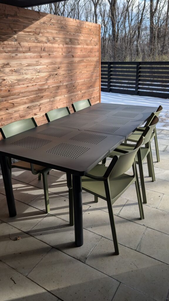 玄関とは反対側の外に出る扉を開けると、夏はBBQで活躍しそうなテラス席があります。