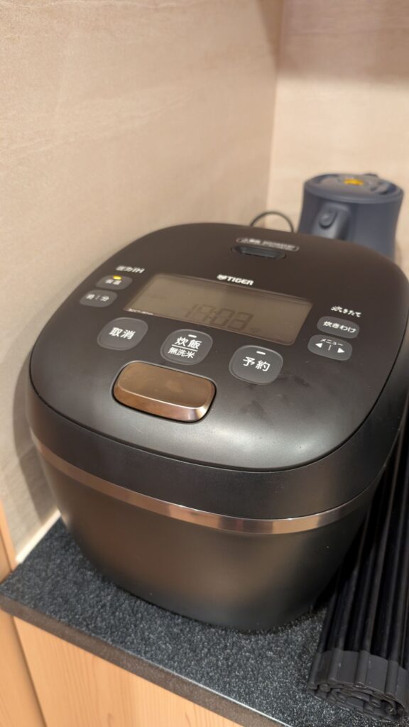 白米は、17:00に炊き上がる設定でお部屋の炊飯器にセットされていました。
