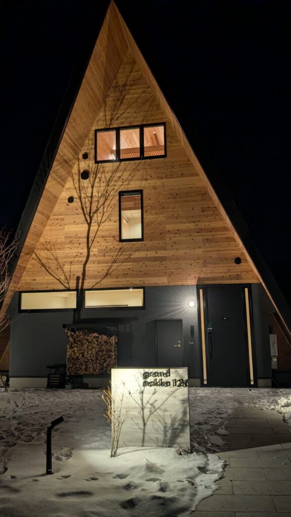 今回宿泊したのは、2025年12月にオープンした一棟貸しヴィラ「グランノッカ(Grand NOKKA)」。広い屋根と薪ストーブ、プライベートドッグラン付きのコテージで快適&安心の滞在でした。
