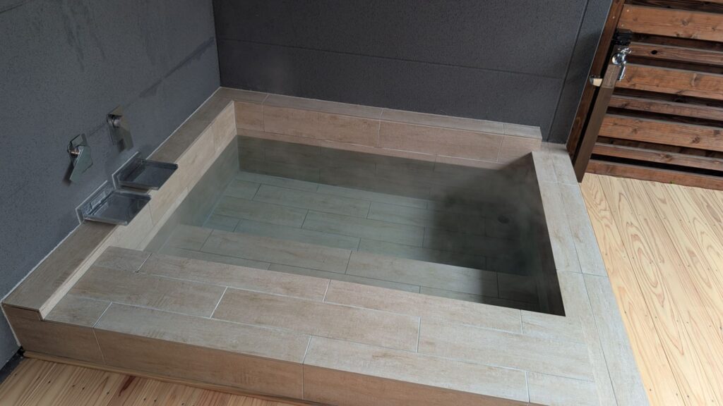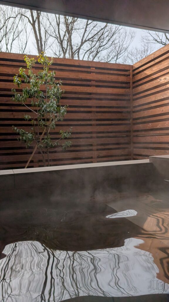 もう一度、部屋付きの露天風呂へ。お湯を張るのに30分以上かかったイメージです。