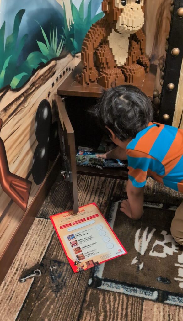 このワークショップは使ったレゴブロックを持って帰ることが出来て、普通は1人2,000円です。スイートルームは本当にお得だなと思いました。