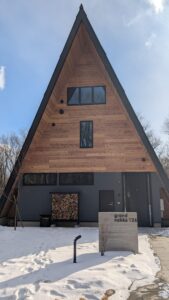 デッキの階段を下ってから、「メーカーズピア」というものづくりなどが体験できたり飲食店のあるエリアを通り抜けて、約10分で到着します。